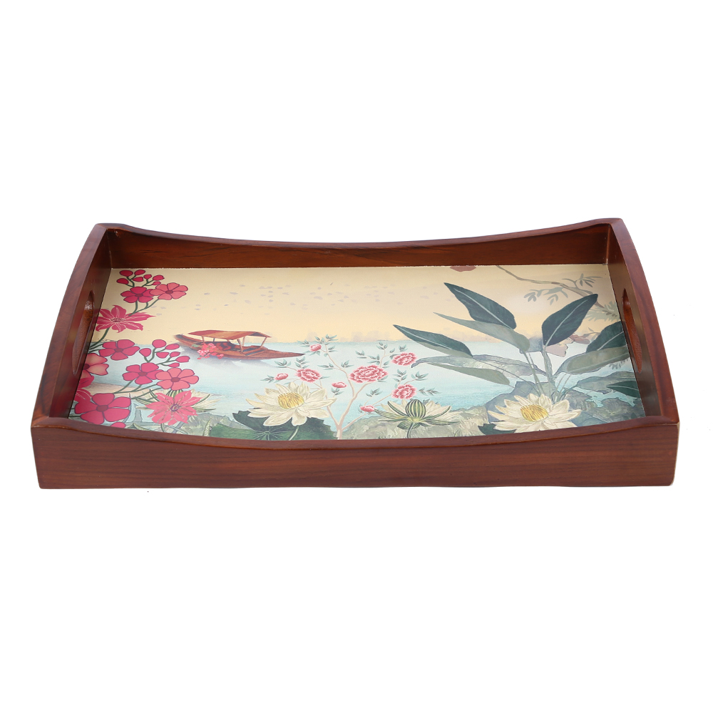 Wooden Boat Shape Tray Digital Flower T-7 Small