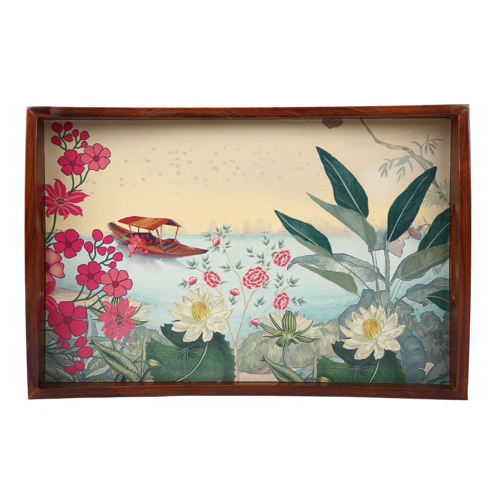 Wooden Boat Shape Tray Global Print T-7 Big